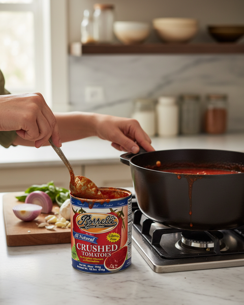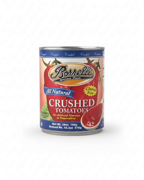 Borrelli Crushed Tomatoes are the prefect consistency for cooking. Cook tomatoes with our Borrelli Minced Garlic and Extra Virgin Olive Oil. Finish with a sprinkle of sea salt and mix with our Borrelli Pasta! Crushed tomatoes are a great start for pasta sauces, chili, lasagna sauce and any of your favorite culinary creations