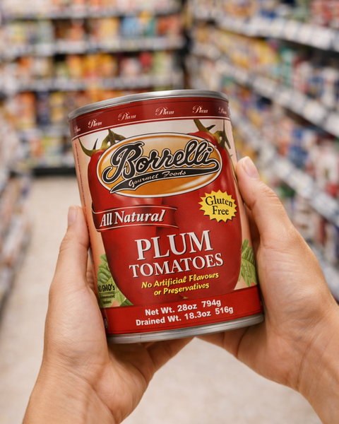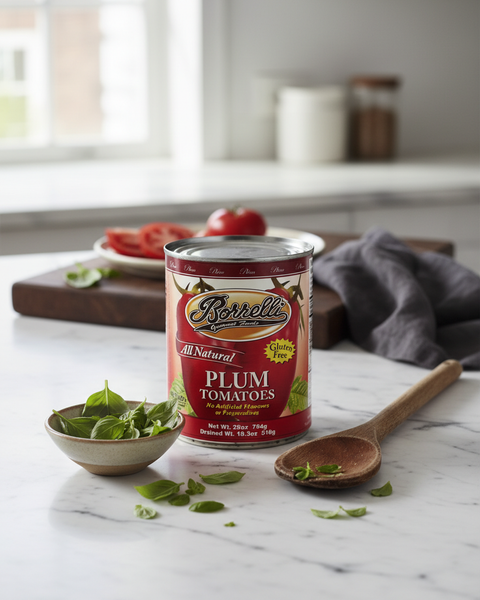 Borrelli Plum Tomatoes are peeled and are a perfect head start to creating fresh, tasty, healthy meals. Cook tomatoes with our Borrelli Minced Garlic and Extra Virgin Olive Oil. Finish with a sprinkle of sea salt and mix with our Borrelli Pasta! Plum tomatoes are a great start for pasta sauces, chili, lasagna sauce and any of your favorite culinary creations.